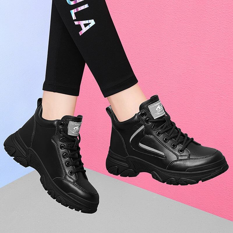Soft Leather Casual Leather Shoes Women's Autumn and Winter New Black Thick-soled Velvet Soft-soled Sneakers