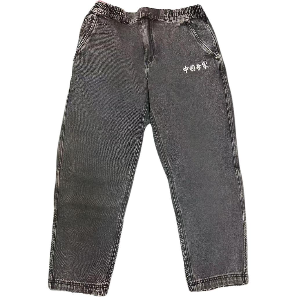 Li Ning Sports Lifestyle Series Elastic Waist Logo Embroidered Straight Leg Jeans Men Jeans Black Gray AKXS137-2