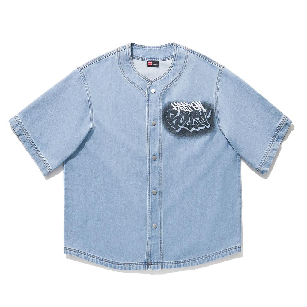 Li Ning Letter Single-Breasted Soft Comfortable Breathable Versatile Short Sleeve Denim Jacket Men Jackets Light-Blue AJDU137-1