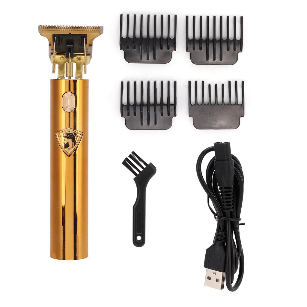 Electric Hair Clipper Beard Trimmer Cordless T Blade Edger 4 Guide Combs Stainless Steel Blades Golden for Men
