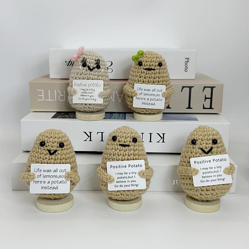 Funny Positive Energy Potato Hug Pocket Doll Mini Handmade Plush Knitted Plant Ornament Home Room Decoration Christams Gifts