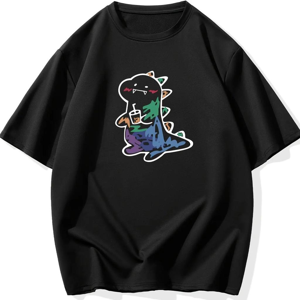 Summer Men's Cute Little Dinosaur Printed Short-sleeved T-shirt, High-quality Casual Wear, Versatile and Trendy Top
