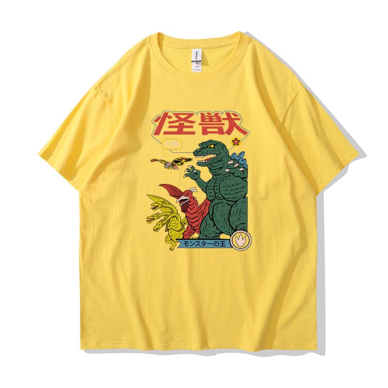 T-shirt Street Style T-shirt Cartoon Short Sleeve Casual Summer Cotton Men's Hip Hop Dinosaur Print 2023 Japan Harajuku Top
