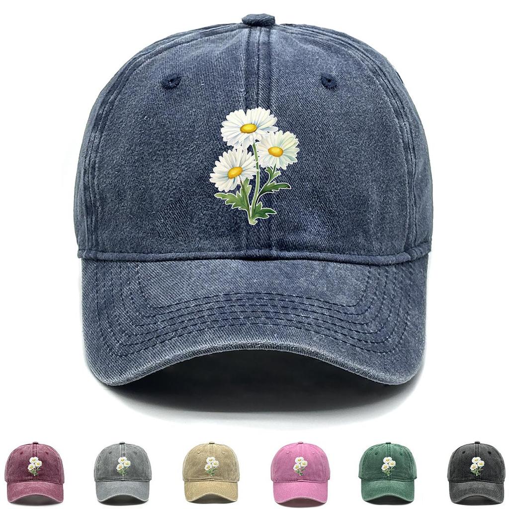 Little Daisy Print Snapback Baseball Cap, Flower Mesh Hat Washed Fit Curved Brim Summer Adjustable Baseball Hat
