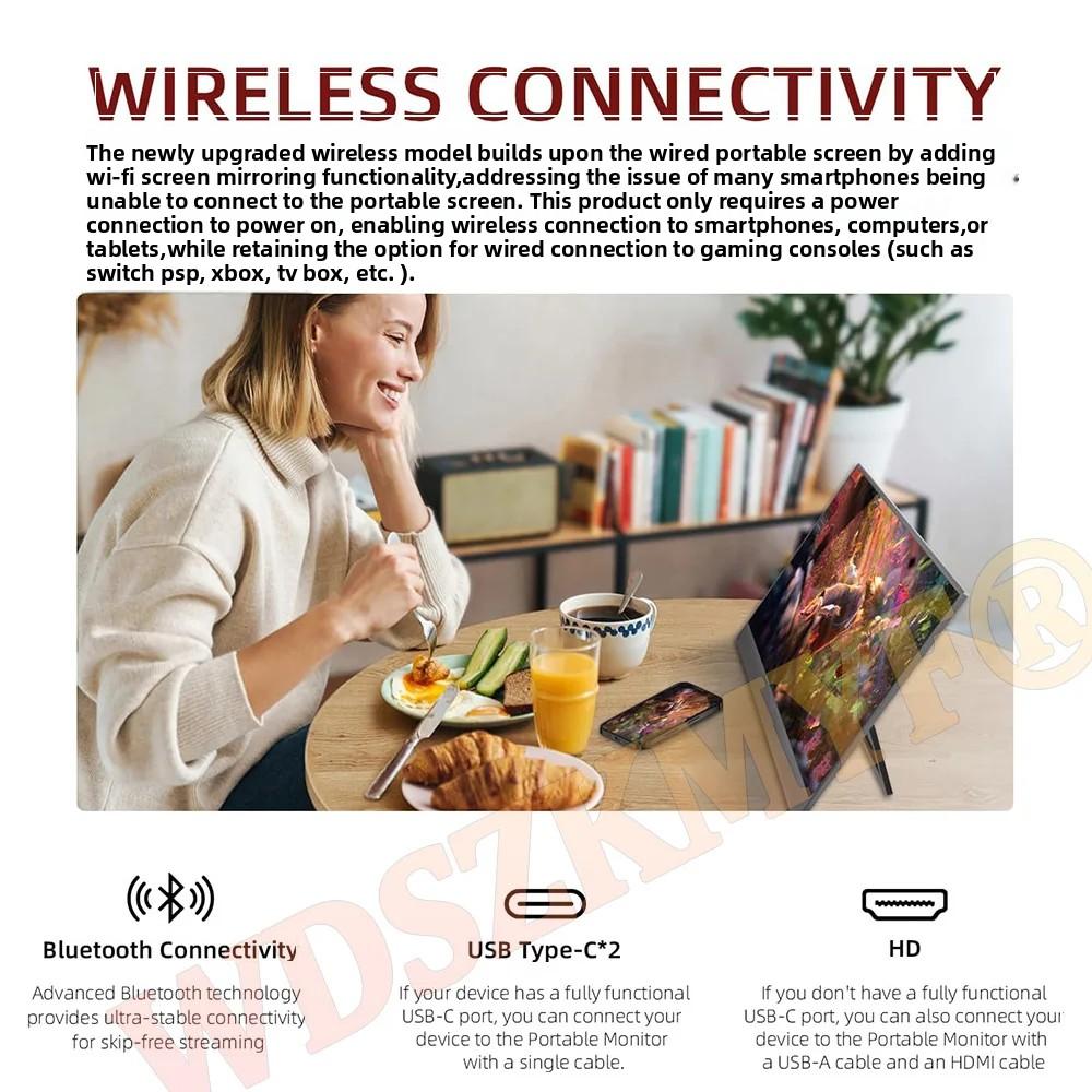 15.6Inch Wireless Portable Monitor 1080P 16:9 360° Rotation For Cell Phone PC Loptop Wired For XBox PS4 / 5 Switch Extension