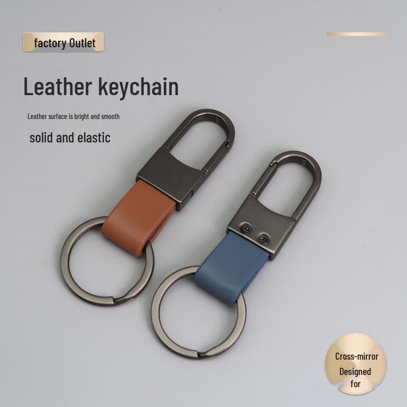 Metal and Genuine Leather Car Keychain with Customizable Laser-Engraved Logo