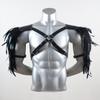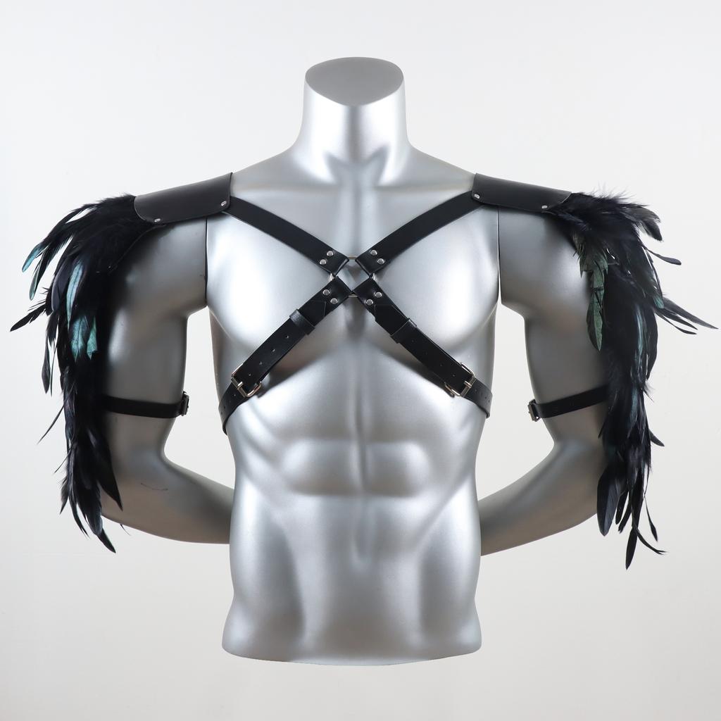 Vintage PU Leather Body Chain Harness with Feather Shoulder Armor Medieval Viking Style Chest Strap Halloween Cosplay Accessorie