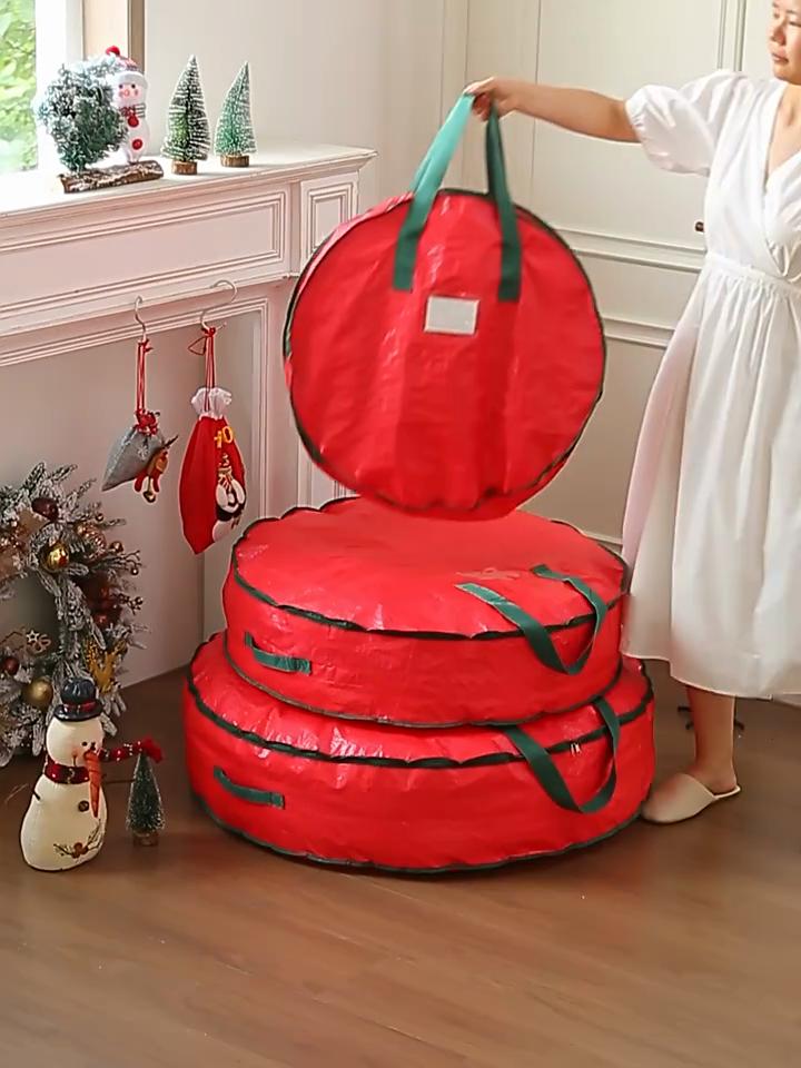 Christmas Round Storage Bag Large Capacity Zipper Closure Dustproof Multi Purpose Organizer Pouch For Gift Wrapping Travel Home Organization