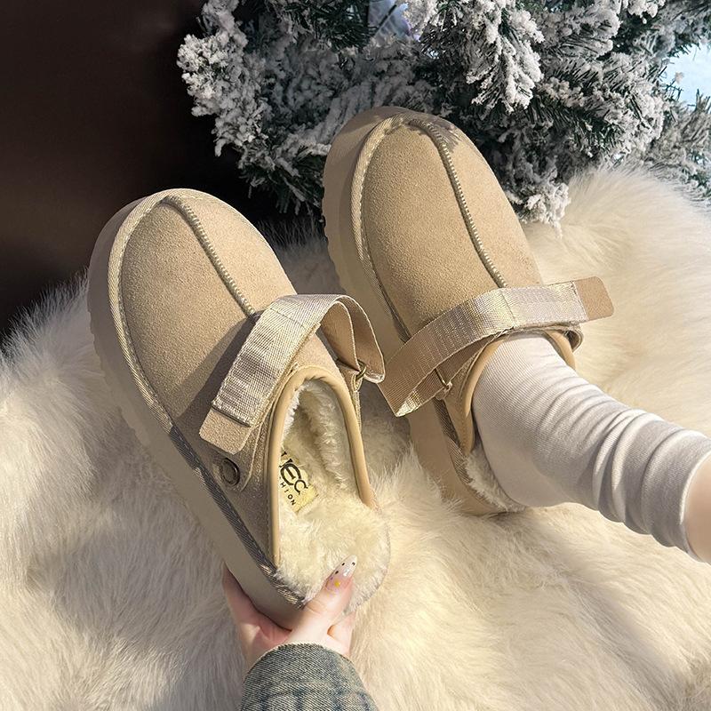 Women's Two-wear Soft Bottom Large Size Thickened Winter Warm Fur One Padded Lining Ankle Boots Non-slip Baotou Cotton Fur Slippers
