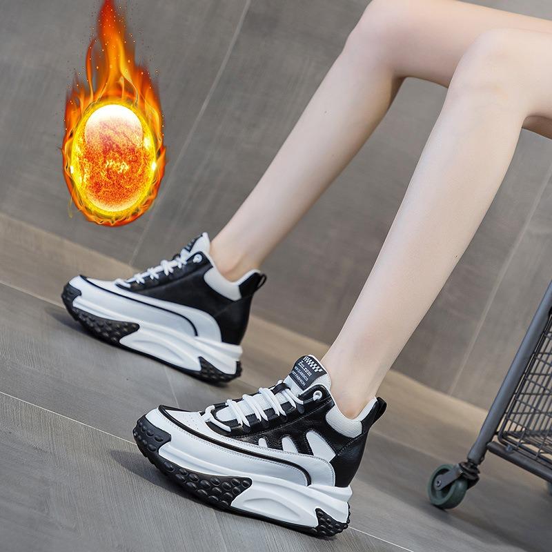 Autumn and Winter Women's Shoes New Trendy Medium Tube Versatile Thick-soled Muffin Inner Height Increase Casual Sports Shoes