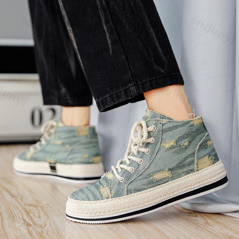 Fashion 2025 Spring New High Top Men's Shoes Niche Design Casual Board Shoes Washed Color Fly Weave Sports Fashion Trend Chunky sneakers
