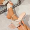 Fashion Clear Square Heels Party Dress Shoes Sexy Gold Lace Embroidery Strap Sandals Women 2025 Summer High Heels Slip On Slippers