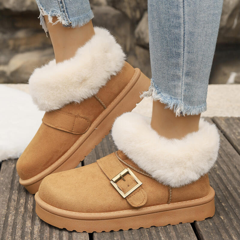 Fashion Metal Belt Buckle Fashion Snow Boots Women 2025 Winter Luxury Faux Fur Ankle Boots Warm Short Plush Non Slip Brand Shoes Woman