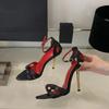 Fashion Sexy Open Toe Buckle Strap Thin High Heel Sandal for Women 2025 Summer New Rivet Hollow Stripper Stiletto Party Dress Shoes