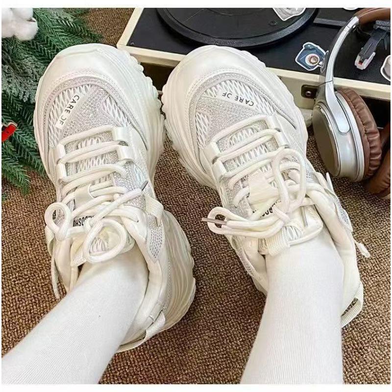 Retro Silver Feet Show Little Dad Shoes Women's Spring New Thick-soled Height Increase Versatile and Thin Sports and Leisure Shoes
