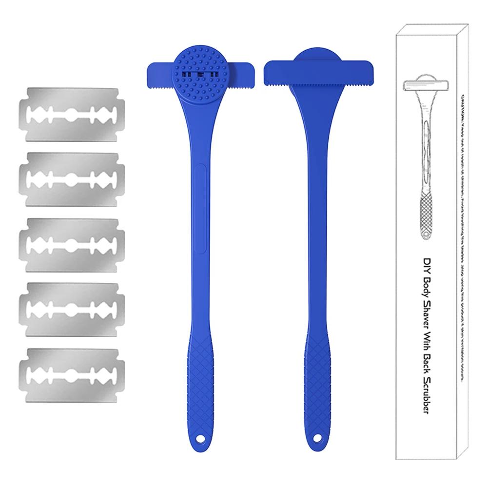 2 In 1 Men Back Shaver Long Soft Handle Shaving Knife Anti-Slip Back Hair Trimmer for Wet Dry Shaving