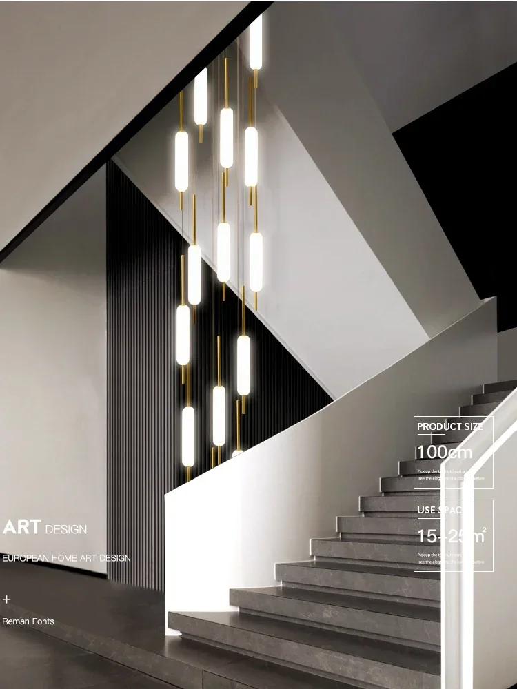 Led Long Chandelier Golden Black Line Hanging Lights Compound Attic Living Room Dining Room Mall Stairs Chandelier