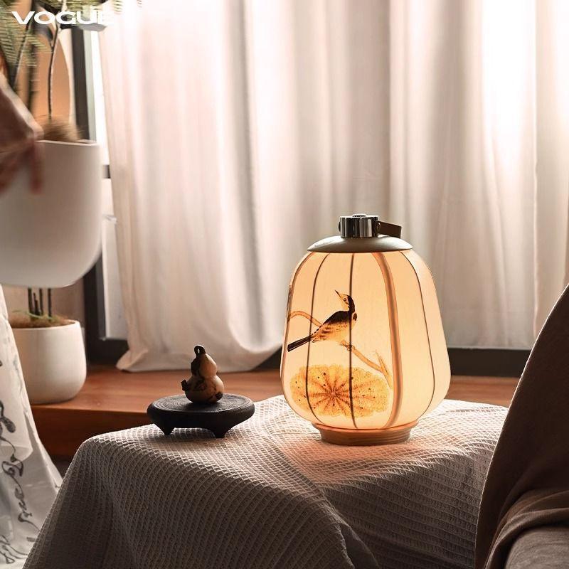 Portable Lamp Ancient Style Zen Tea Room Chinese Hand-painted Fabric Classical Ornament Chinese Style