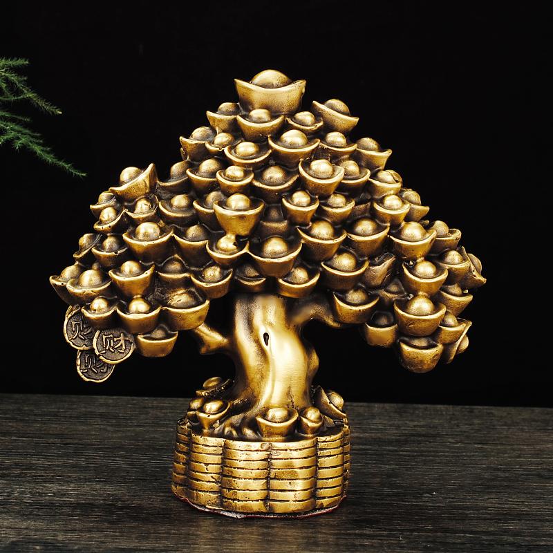Chinese Lucky Pure Copper Bring Money Tree Ornaments Pot Tree Living Room Office Desktop Sculptures