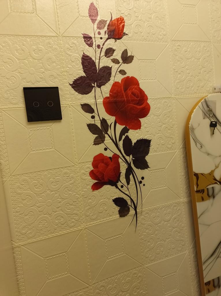 Painted Red Roses and Black Leaves, Bathroom and Home Wall Decoration Stickers