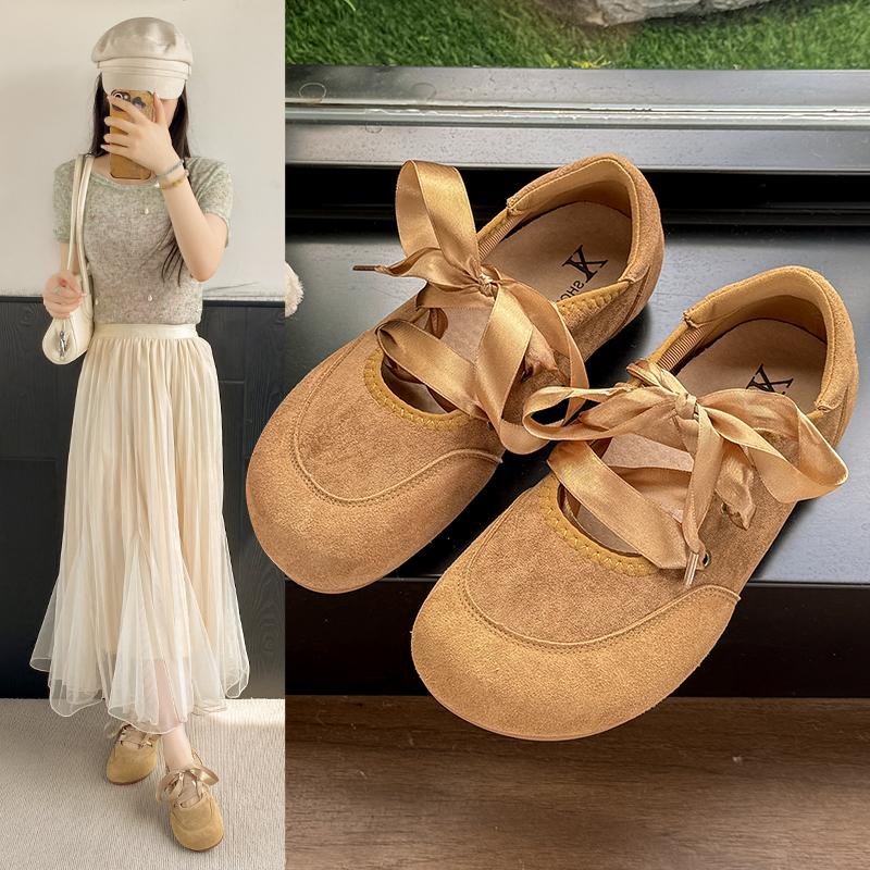 Fashion French Vintage Women 2025 Spring Fall Bow Ballet Shoes Mary Jane Shoes Soft Flat Casual Single Shoes