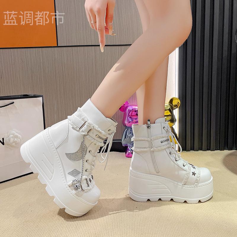 Fashion Platform Thick Gothic Boots Lady Buckle Autumn Women 9CM Wedges High Booties Punk Street Cosplay Botas Motorcycle Chain Shoes