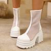 Fashion Super High Heel White Women's Summer Thin 2025 New Block Heel Breathable Mesh Boots Heightening Cool Boots