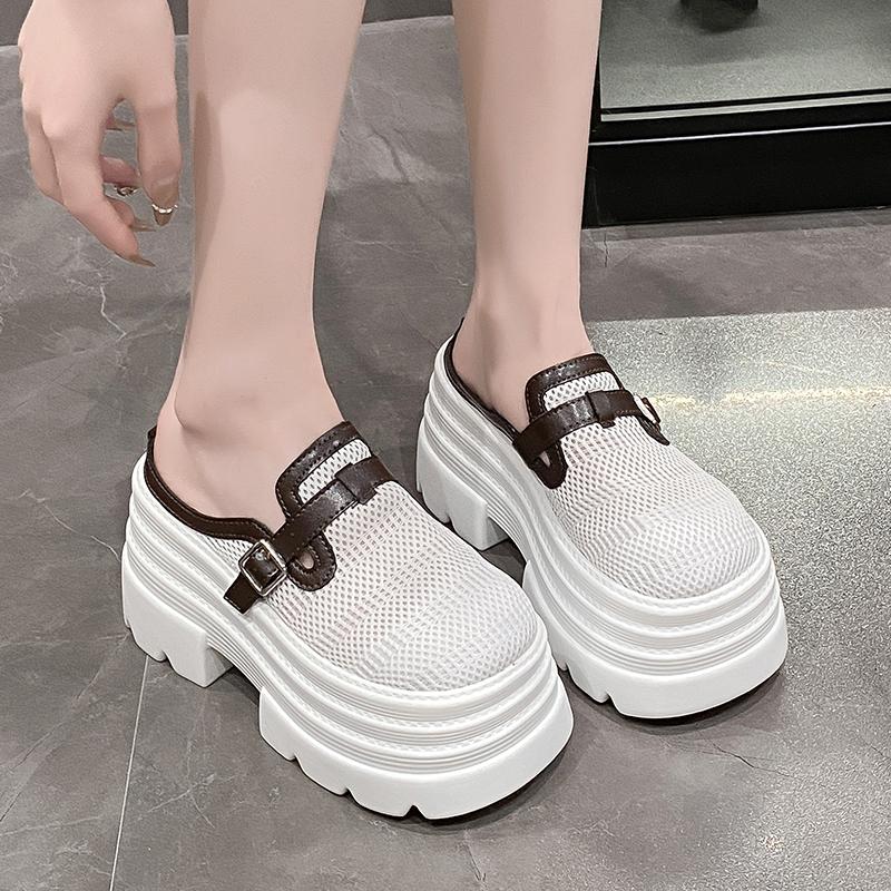 Fashion New 2025 Mesh Slippers Slip On 10CM Platform Wedge Sandals Women Summer Breathable High Heels Chunky Sneakers Woman