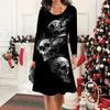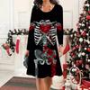 2025 Autumn & Winter Women's New Casual Crew Neck Dress 3D Halloween Pattern Ideal Halloween Christmas Gift