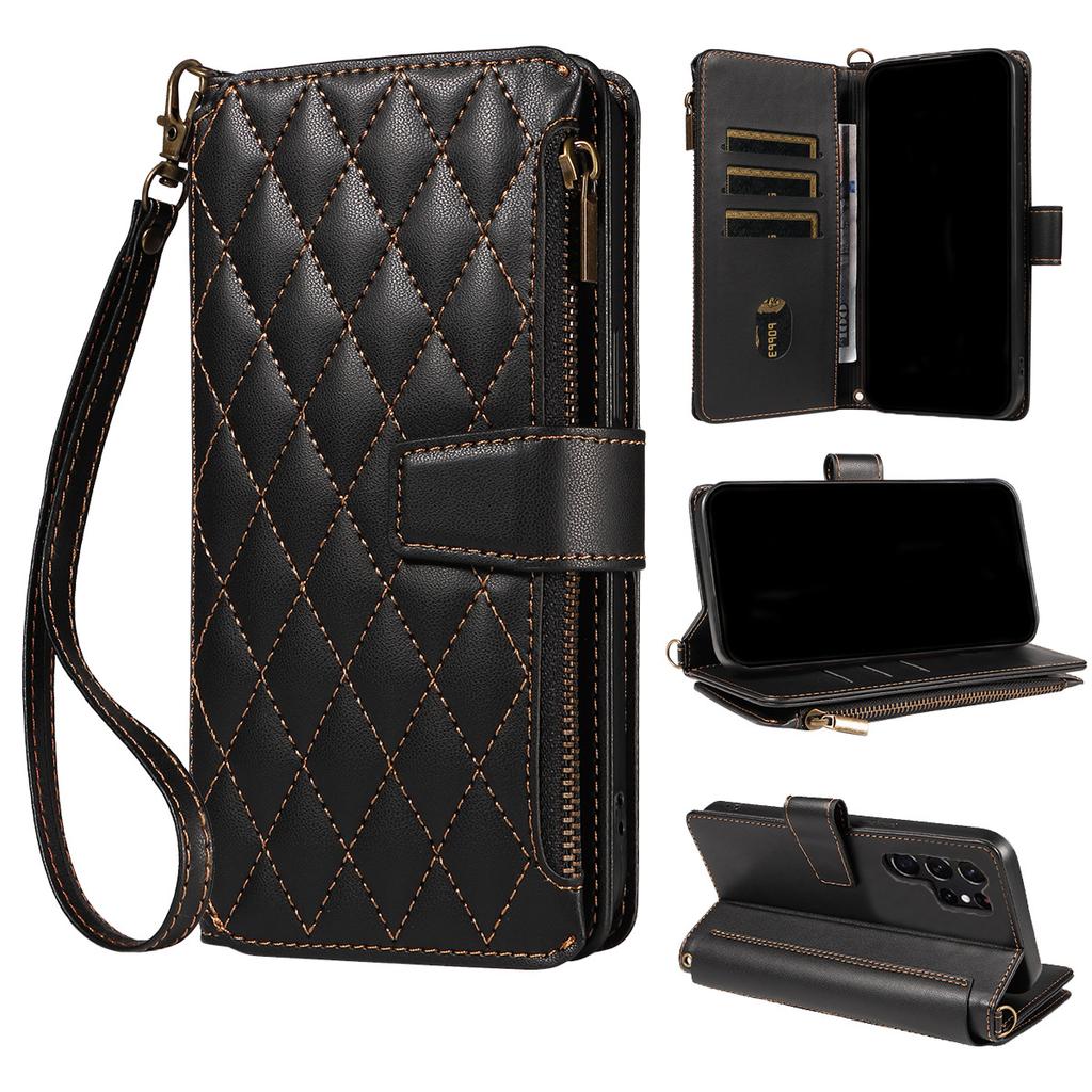 Suitable for Samsung S25 ULTRA Mobile Phone Case S24FE Zipper Card S10 E Mobile Phone Case with Lanyard