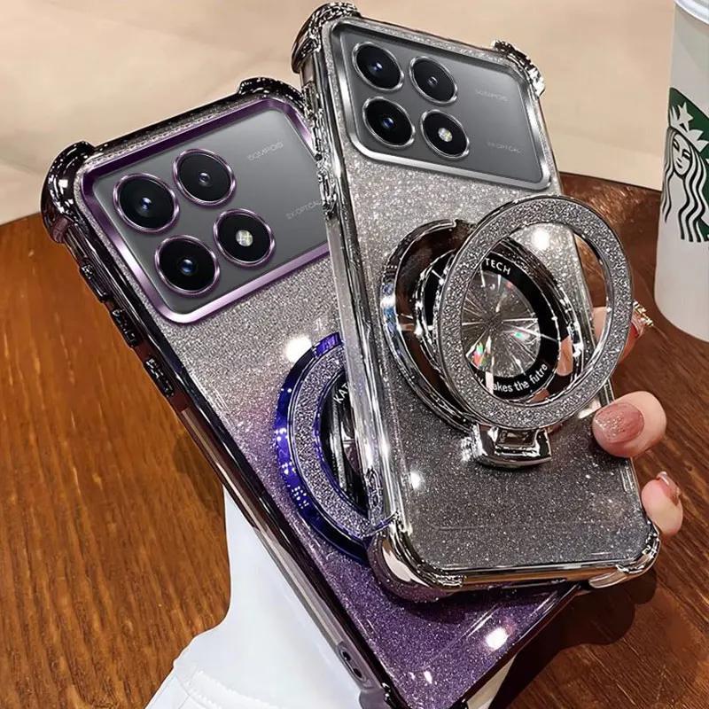 Magnetic Bracket Case Poco X6 Pro 5G,Luxury Stand Holder Case For Xiaomi Poco X6 F6 M6 Pro Shockproof Cover pocoX6pro Women Gift