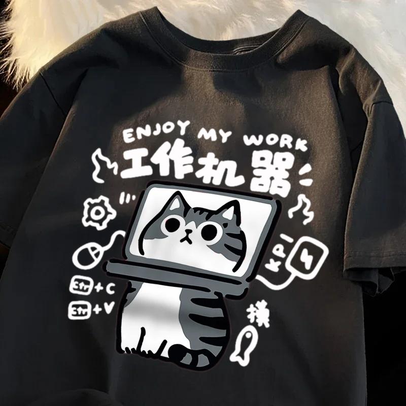 Fun Tool Cat Print Japanese Style T-Shirts Men Women Breathable Clothing Summer Cotton Tshirt Hip Hop Loose Oversized T-Shirt