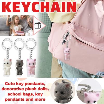 Cat Shaped Pendant Cartoon Animal Shaped Keyring Fashionable Flocking Key Rings Charm Jewelry for Backpacks and Phone