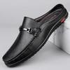 Fashion Luxury Men Genuine Leather Shoes Casual Business Men Slip-on Shoe All-Match Half Slippers Loafers Summer Handmade Flats Slippers
