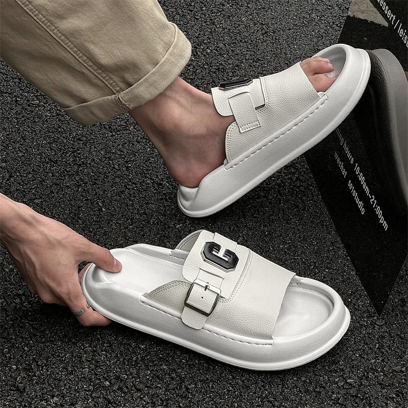 Fashion High Quality Luxury Men's Half Drag Summer Leather Slippers Cool Breathable Anti-Slip Flats Outdoor Trendy Beach Walking Shoes