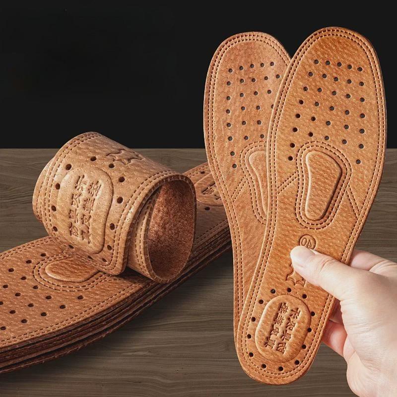 Thickened Genuine Leather Moisture-Wicking Breathable Deodorant Sports Insoles for Men and Women