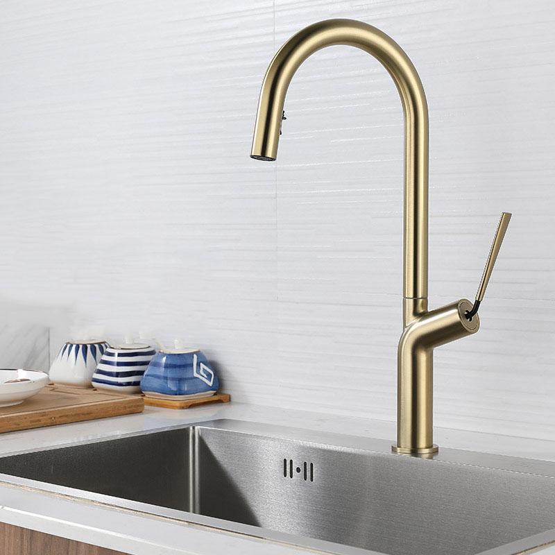 Brushed Gold/Gray Pull Out Kitchen Sink Faucet Brass Deck Mounted Stream Sprayer Hot And Cold Water Mixer Sink Faucet