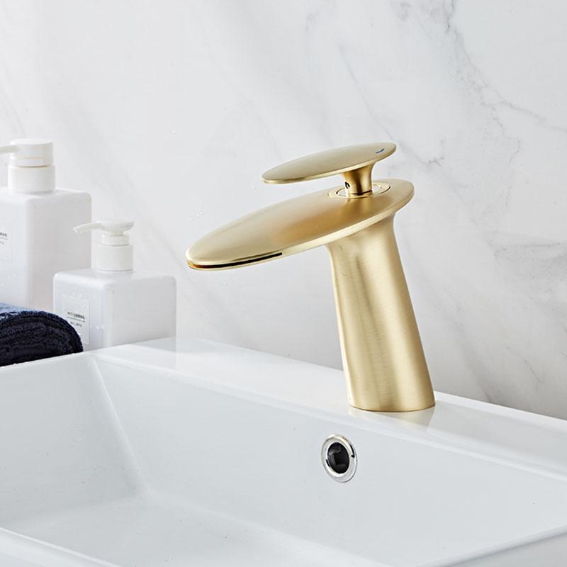 Brushed Gold Basin Faucet Brass Bathroom Faucet Waterfall Cold And Hot Mixer Sink Tap Single Handle Deck Mounted Gold/Rose Gold