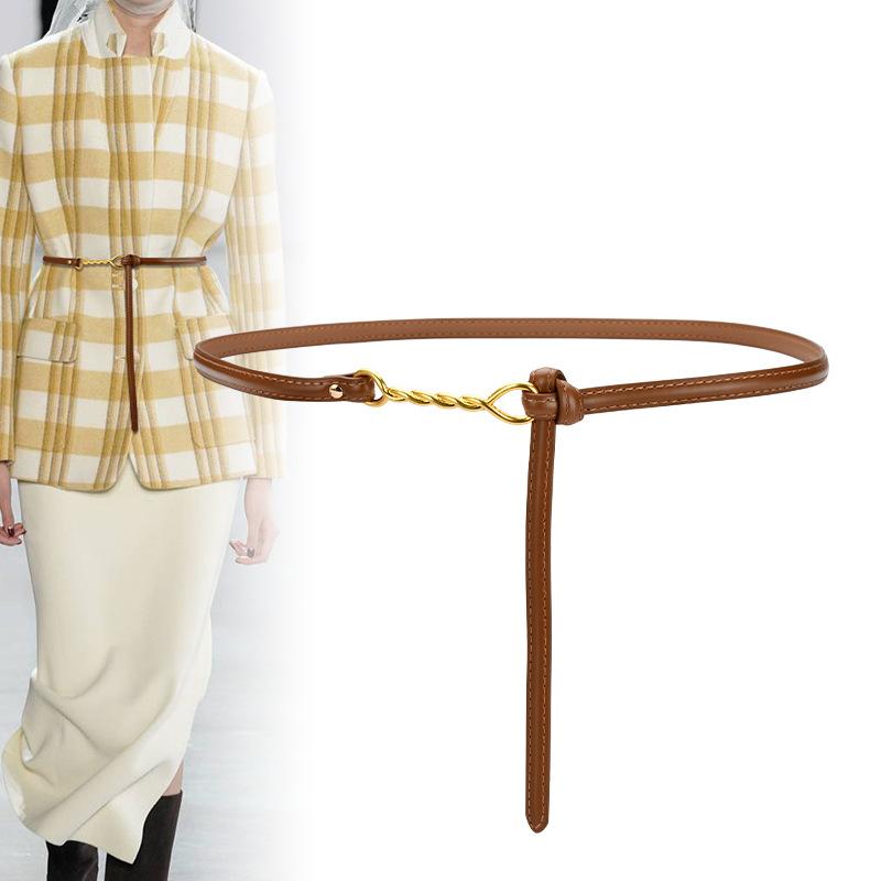 New Genuine Leather Belt for Women, Versatile Dress for Women, Decorative Windbreaker Jacket, Small Waist Chain Knotted Thin Belt