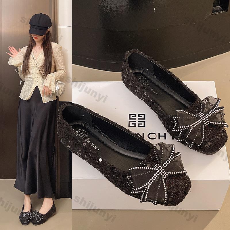 Fashion Women Shoes 2025 Spring Autumn New Comfort Non Slip Women Flats Fashion Soft Sole Bow-knot Rhinestone Square Toe Mary Jane Shoes