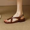 Fashion French Retro Flats Toe-Mounted Sandals Women Summer 2025 Fashion Low Heel Rome Shoes Rubber Material Outsole Comfy Women Sandals