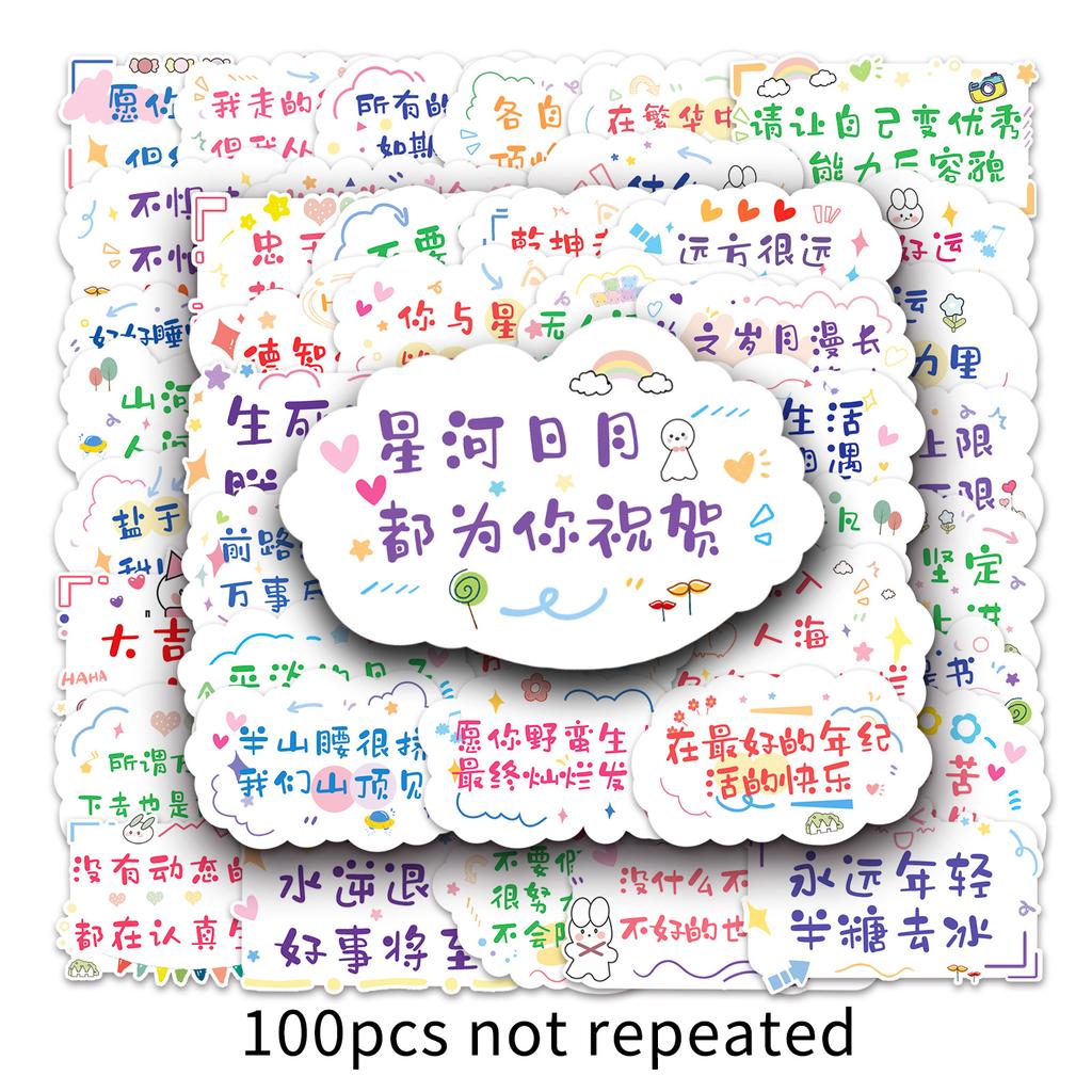 100 Inspirational Short Sentences, Graffiti Personalized Text, Slogans, Hand Account Creative DIY Skateboard Suitcase Stickers Waterproof