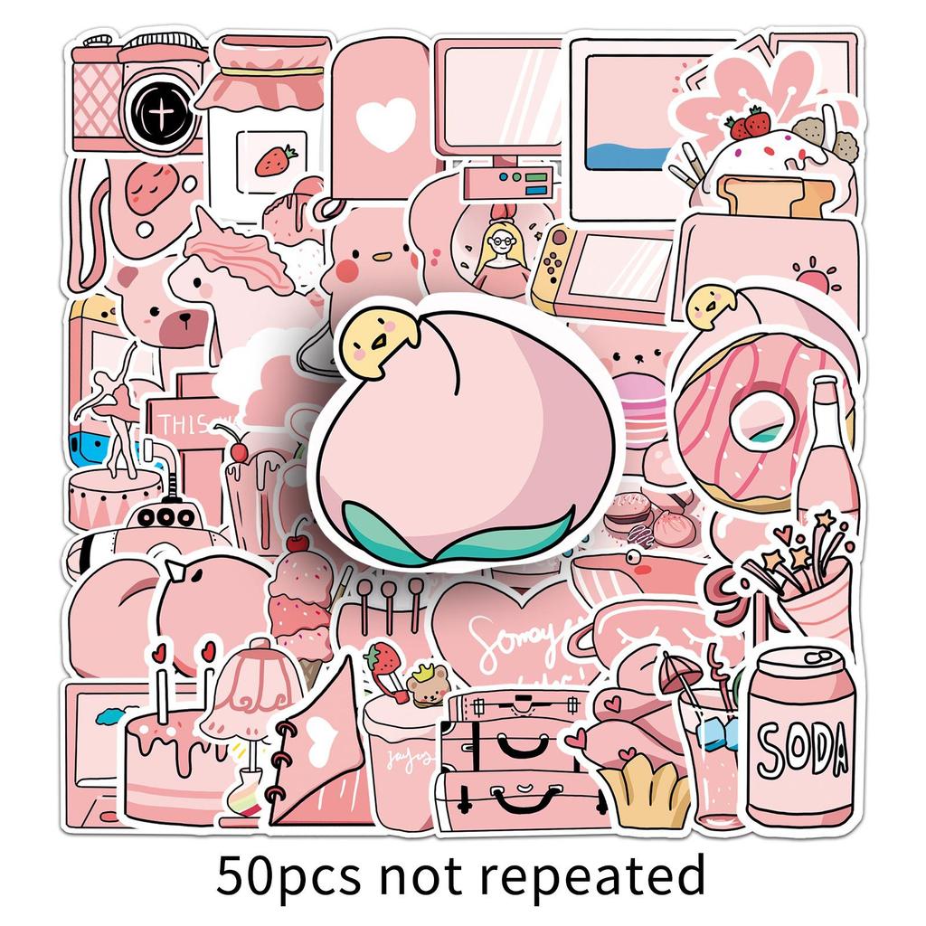 50 Pink Doodle Fresh Cute Guka Creative Decoration DIY Milk Tea Cup Suitcase Stickers
