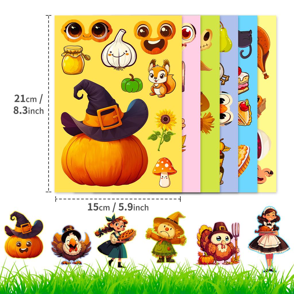 6 Photos/package Thanksgiving DIY Puzzle Face Change Stickers for Children's Educational Toys Pumpkin Turkey Repeat Stickers