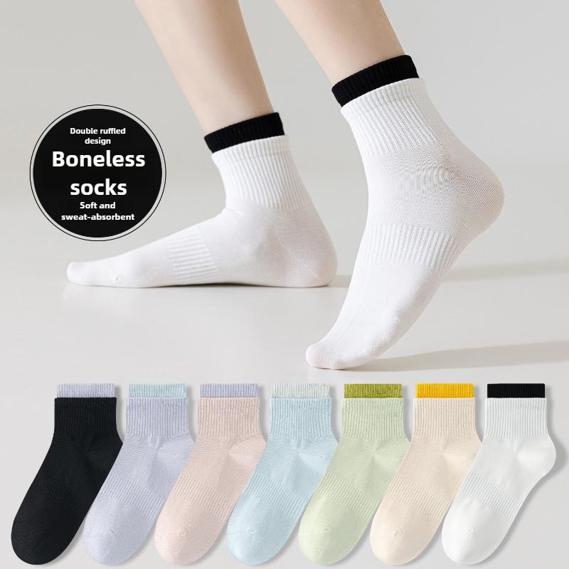 Female Spring and Autumn Simple All Purpose Cotton Double Roquettes Sweat Breathable Sports Tube Socks