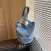 Retro Bucket Bag Large Capacity Bag Women's New Crossbody Shoulder Denim Embroidered Commuter Bucket Bag