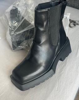 It says leather boots, but it's plastic. Joom customer service says it says PVC and that it's leather. Absolutely not! It says PVC on the inside and leather on the outside. The shoe is 2 cm shorter than usual, not EU38 as it says in the description.