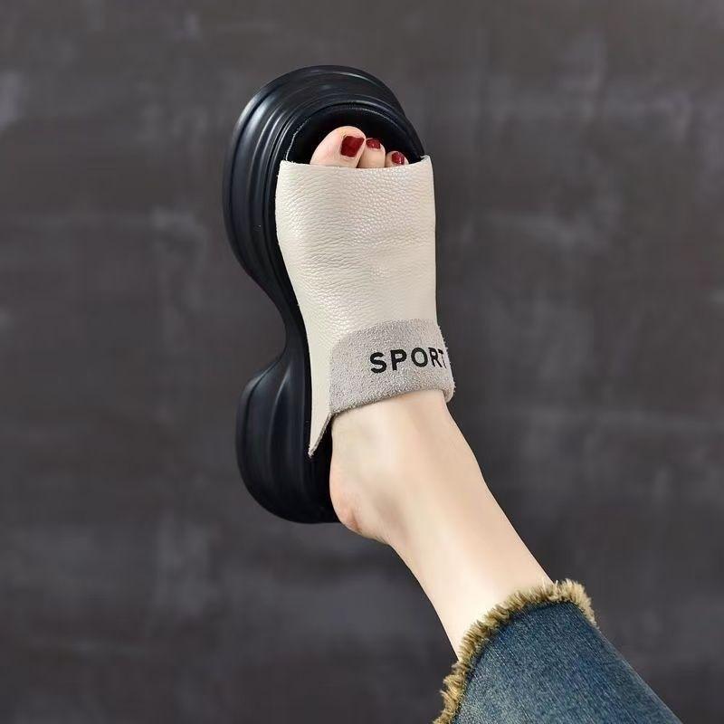 Muffin Bottom Soft Bottom Thick Bottom Fish Mouth Soft Leather Slippers Women's Summer Light Soft Bottom Fish Mouth Retro Outer Wear Sandals