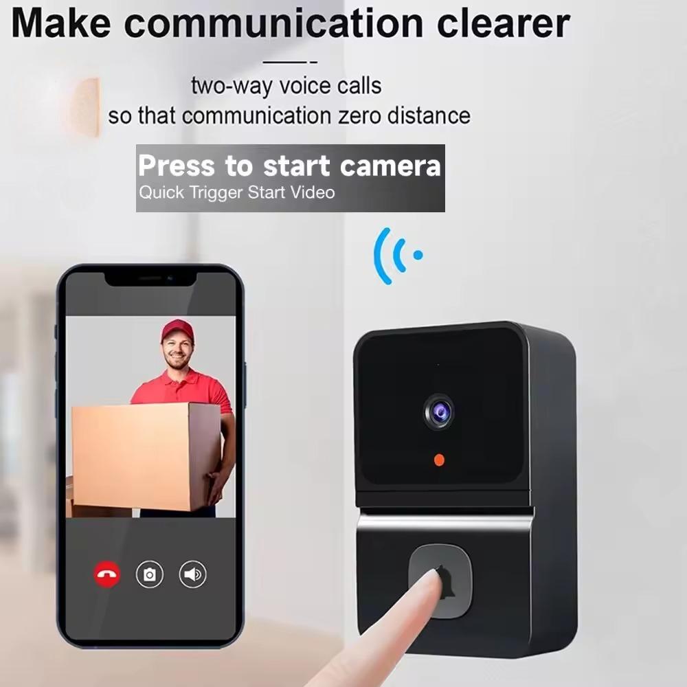 Smart WiFi Doorbell, Built-in Battery - Wireless Security Camera, Easy Home Monitoring, Home Security, Stylish Black Design, Advanced Audio Technology