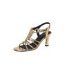 Fashion New Summer Sandals Split Leather Sandals for Women Fashion Round Toe High Heels Sandals Ladies Shoes Golden Gladiator Shoes